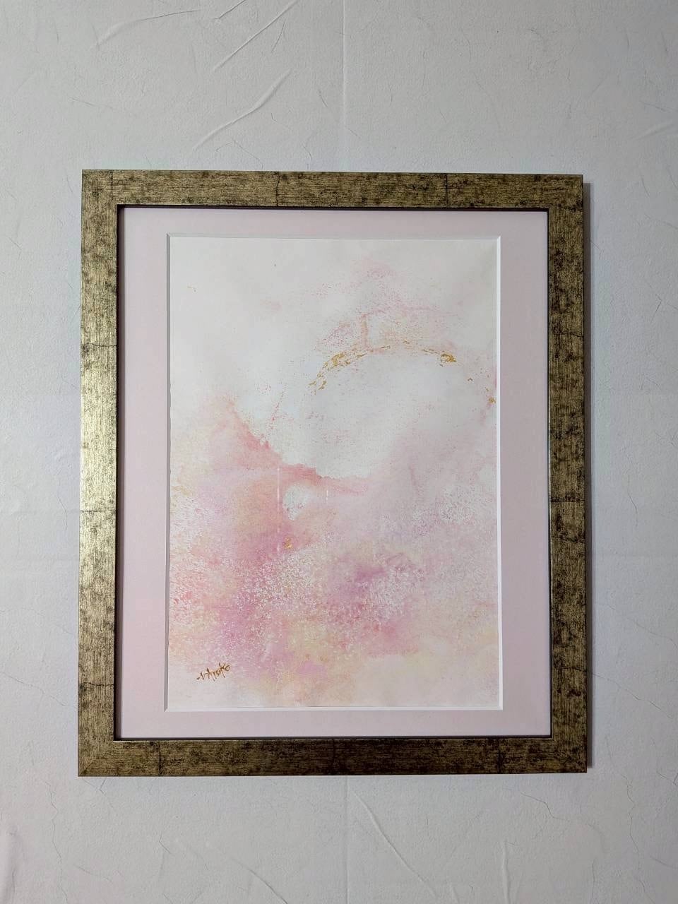 Japanese pigment,gold leaf, Japanese paper on paper
