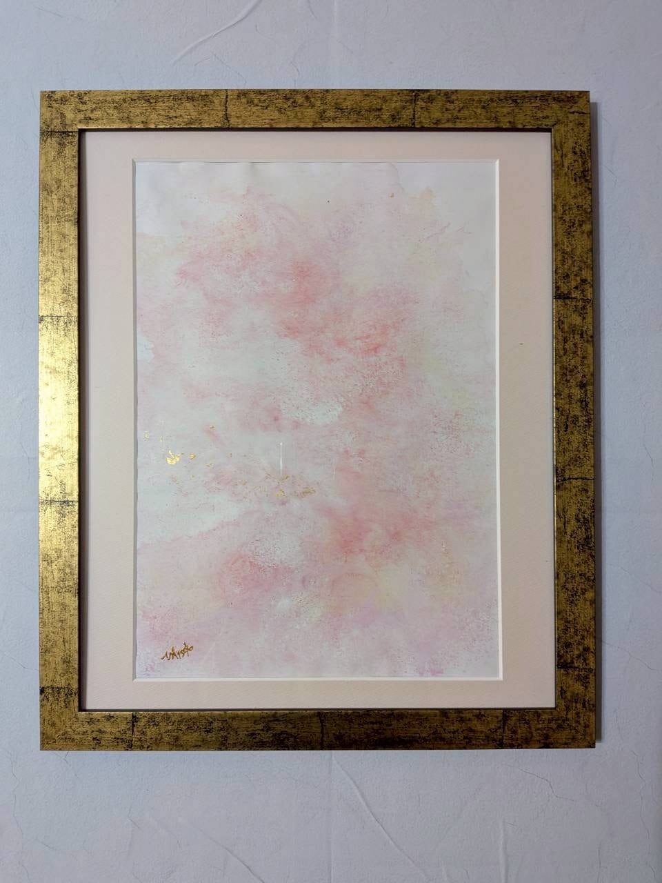 Japanese pigment,gold leaf, Japanese paper on paper