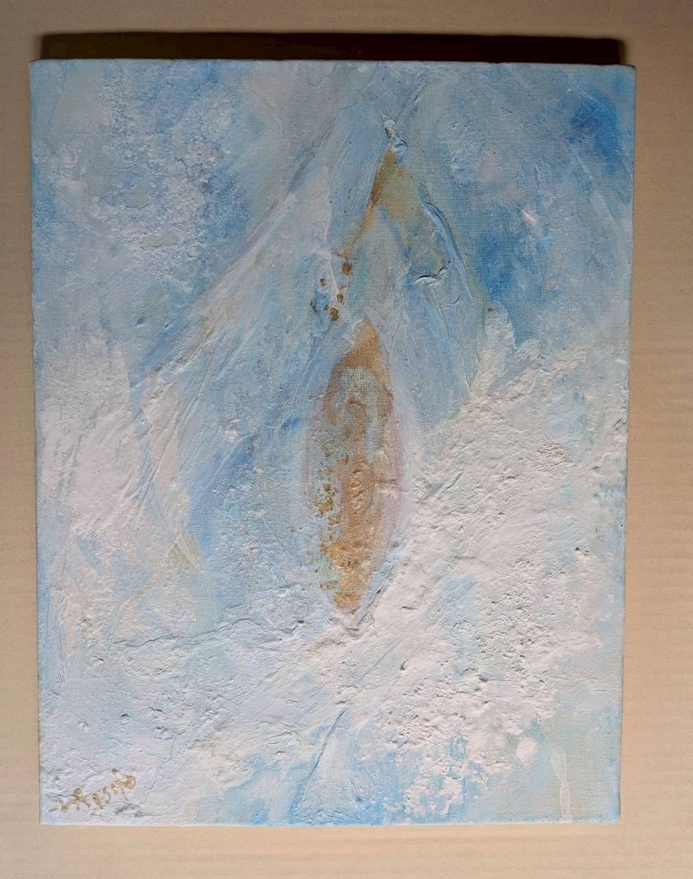 Japanese pigment, gold leaf, Japanese paper on canvas